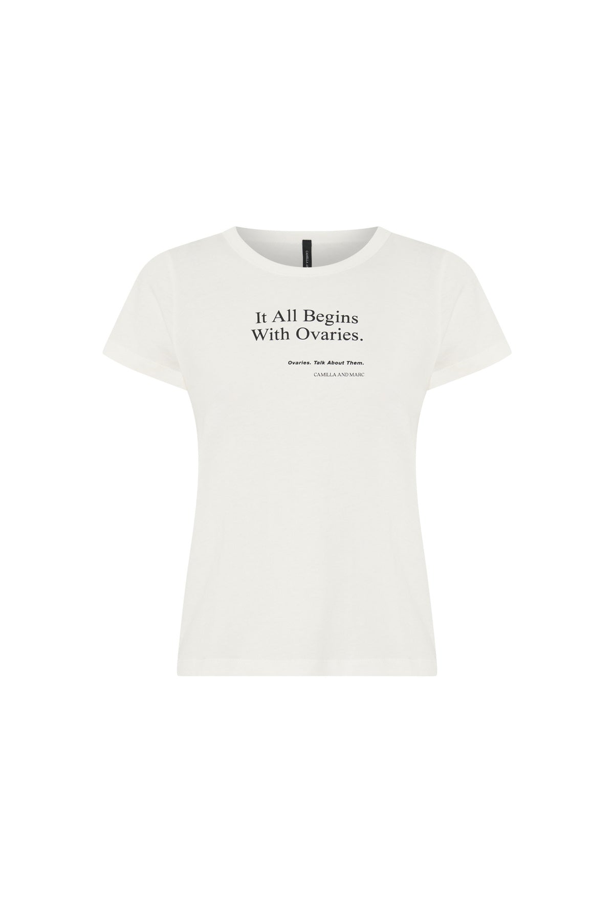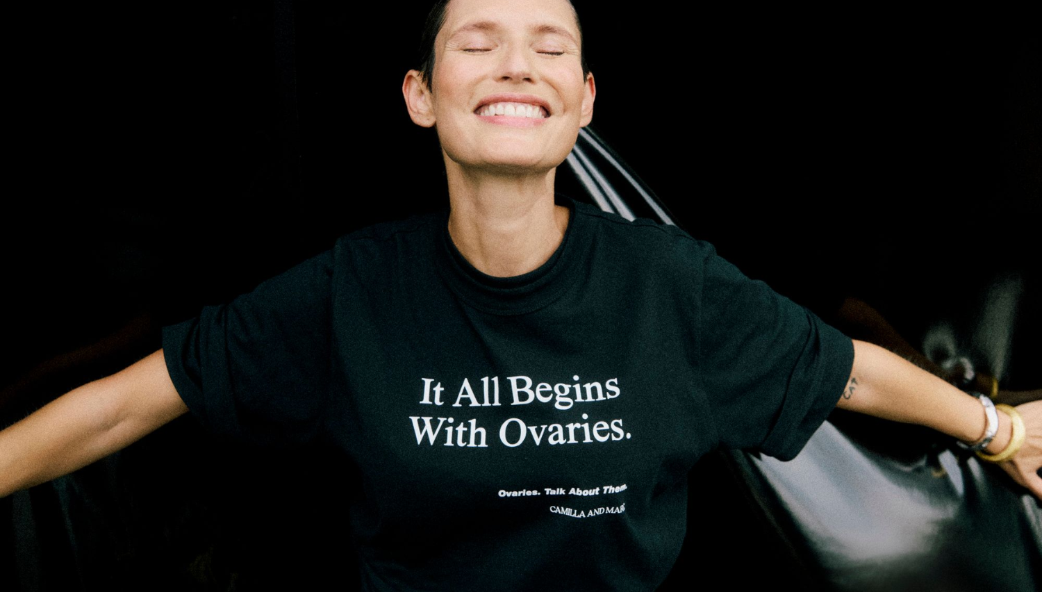 This year's Ovaries. Talk About Them. t-shirt artwork was designed in-house by Creative Director Camilla Freeman Topper and CEO Marc Freeman. The 2025 t-shirt design features three powerful statements to bring to life the bold strength and advocacy that underpin the campaign.
